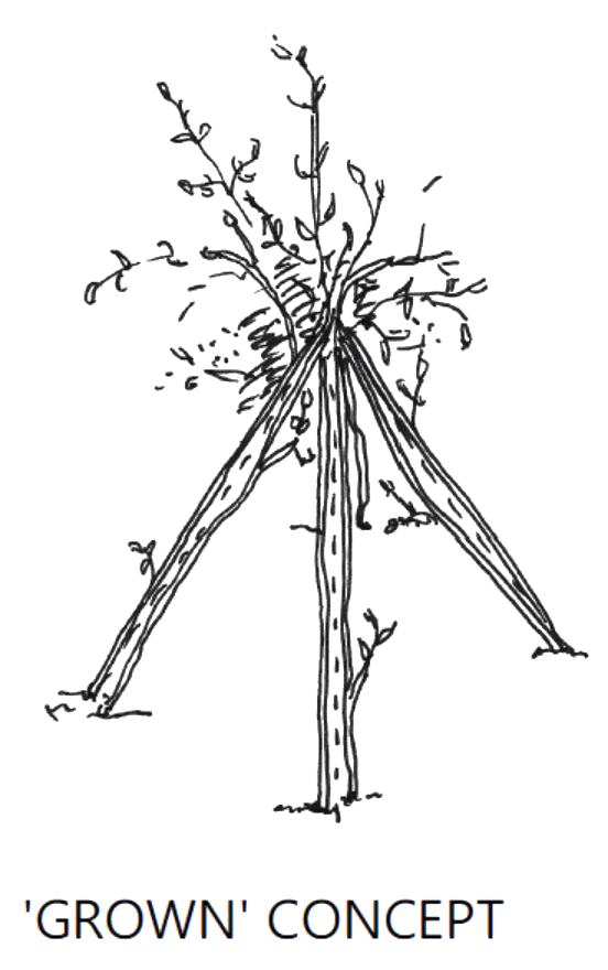 The intent was to provide a climbing and sheltering structure for elementary school students which could be used immediately but which would grow and change over time, using minimal virgin industrial materials.